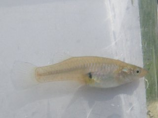 【右】カダヤシ。特定外来生物で@入れないA捨てないB拡げないのB原則を破るときつい罰則があります。