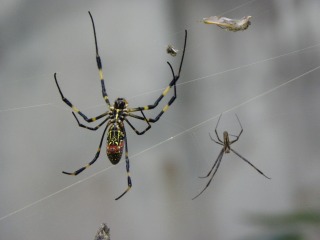 【右】ジョロウグモ。お父さん(小)お母さん(大)