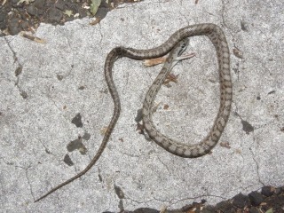 【左】蛇が交通事故で死んでいました。アオダイショウ、小さいときはマムシの模様をしています。