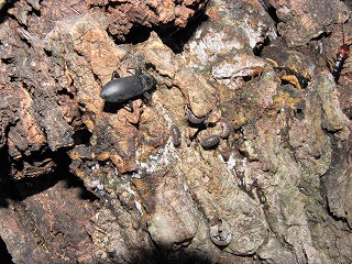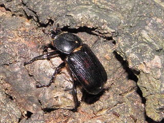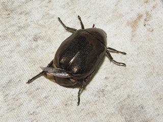 【左】コカブトムシ(知多半島では時々見かけます。虫の死骸などを食べるようです)