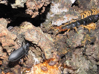 【右】ユミアシゴミムシダマシとダンゴムシ
