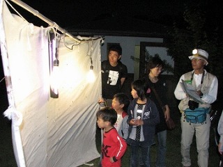 灯火⇒クワゴ、アオイラガ、メイガ類、ヤガ類、ホタルガなどガ多種、コハンミョウ、ミドリマメゴモクムシ、トゲアトキリゴミムシ、コガシラハネカクシ類、オオミツノエンマコガネ、セマダラコガネ、ヒメコガネ、コフキコガネ、クロコガネ類、ドウガネブイブイ、クシコメツキ類、ヨツボシケシキスイ、アオバネサルハムシ、イネミズゾウムシ、フタモンホシカメムシ、チャバネアオカメムシ、ツヤアオカメムシ、クサギカメムシ、クロカメムシ、アオモンナガカメムシ、キイロサシガメ、ヨコバイ類、ヒシウンカ類、バッタ類(幼)、トビケラ類、ユスリカ類、アメリカミズアブ(?)、シロフアブ類、ヒメバチ類、
