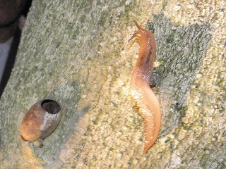 【右】ナメクジとヒロヘリアオイラガの抜けマユ