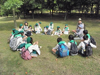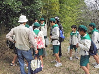 みどりの少年団は、35年前の昭和50年に「緑とのふれあいをとおして緑に親しみ、緑を守り育てる心を養うと同時にその活動を通じて、緑化思想の高揚と正しい緑の知識を身につけるとともに広く自然を愛し、そして自らの社会を愛する豊かな人間に育つこと」を日的に設立されました。組織は全国にあり、現在の団員総数は約33万人です。子供の人口は年々減っていますが、みどりの少年団は緑を増やし自然を守る活動をしているため年々増加しているとのことです。