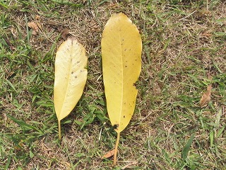【左】大きな葉⇒マテバシイ 【中】いい匂い⇒クスノキの葉 【右】とげとげの葉⇒クヌギ
