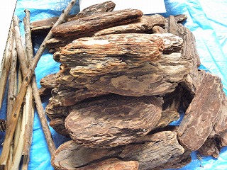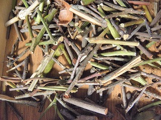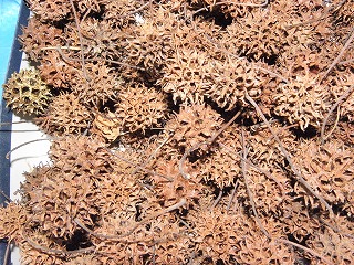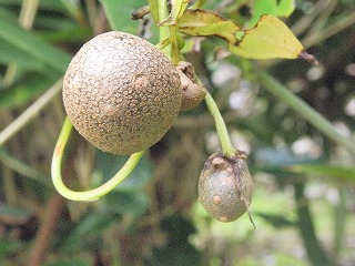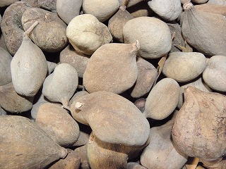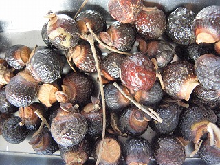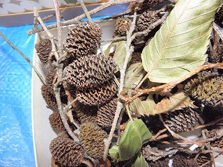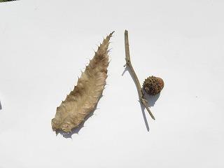【左】漂着物 【中】イスノキの虫こぶ 【右】小枝