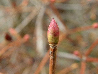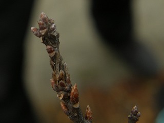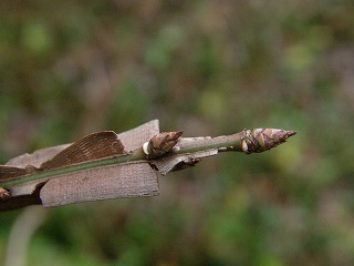 【左】コブシの葉芽 【中】ユキヤナギの花芽 【右】ウメ、先の小さいのが葉芽