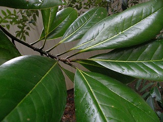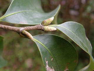 【左】アオキ 【中】ユズリハ 【右】タブノキ