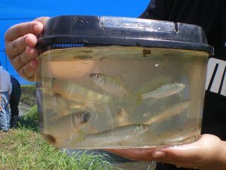 オイカワ、メダカ、ドジョウ、ウナギ、マハゼ、ヌマチチブ、ナマズ、ゴクラクハゼ、ボラ、ギンブナ