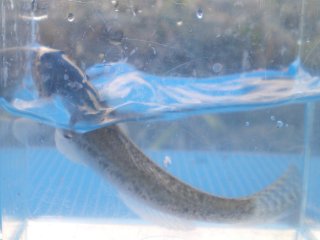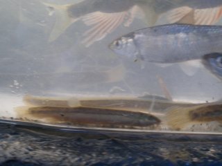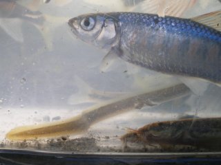 【左】ウナギの尾っぽとドジョウの頭 【中】ドジョウの全身 【右】小さくてもナマズの貫録
