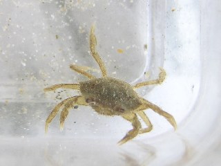 【左】外来生物のチチュウカイミドリガニの小さい個体がたくさん半田運河で採集できました。