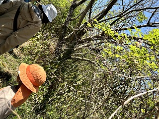 1時間の観察会はあっという間に過ぎて、早く来て〜みんなまっている〜と、呼ばれ、あわてて集合場所へ進む。が、竹の子が顔を出していて立ち止まってしまうので、さらに呼ばれてしまうという事態になってしまった。