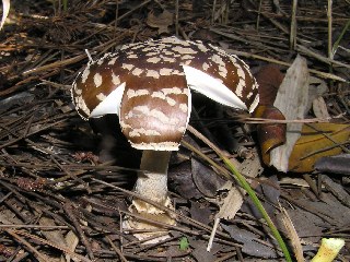 【左】どくがあるテングタケです。げんかくさようをおこす、せいぶんがあります。