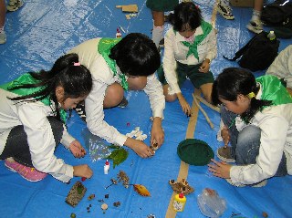 午後の自然物の工作は、3月に行なわれた「全国こどもエコフェスティバル」の時に使用した自然物材料が残っていたのでこれを有効に利用しました。材料不足も無く、こちらもほぼ計画通りに進められました。
