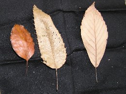 【右】落ち葉一枚、左からクスノキ、アベマキ、アラカシです。