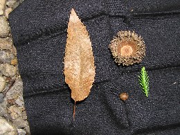 【右】なにかトゲトゲのもの。アベマキの鋸歯、ドングリの殻斗、スギの葉。