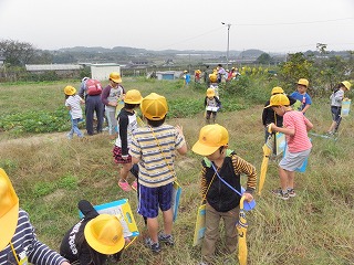 時々小雨がぱらつく日になりましたが児童たちは楽しく学校の周りから近くに神社を目指して生き物探しをしました。子供たちは植物より昆虫に興味があるみたいで捕獲しては手にとって観察をしました。(記・降幡)