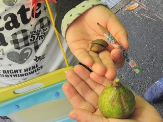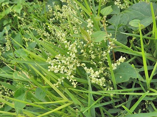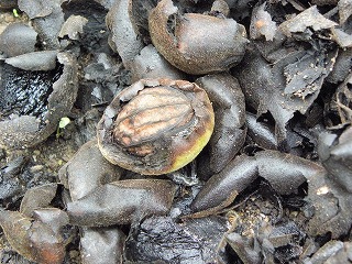 オニグルミの実、ヤブツバキの実と種子、ツルドクダミ、ヨウシュヤマゴボウ、アメリカスズメノヒエ?