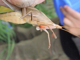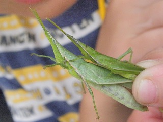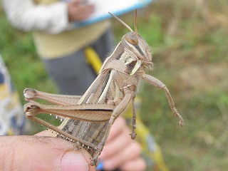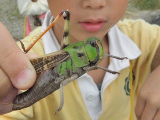 【左】学校農園にバッタの仲間がたくさんいました。 【右】校庭のオニグルミ