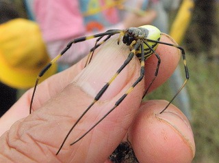 【左】オンブバッタ 【中】ジョロウグモ 【右】ツチイナゴ