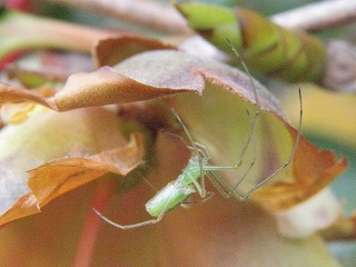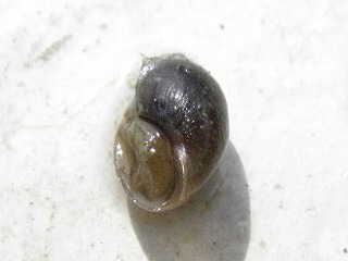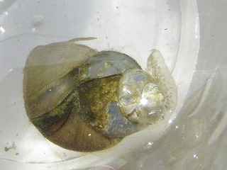 【左】アシナガグモの仲間 【中】タニシ(校庭の池) 【右】サカマキガイ(校庭の池)
