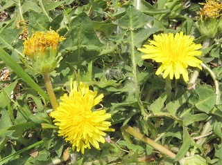 【左】セイヨウタンポポ 【中】トウカイタンポポ 【右】ハルノノゲシ