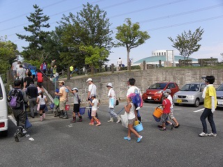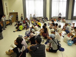 9時30分から開会の行事。挨拶の後、魚の取り方や安全上の注意を聞いてから9時50分に文化センターを出て、川に向かった。  台風の影響で数日前に多量の雨が降ったので、川の水量が多いのではないかと心配されていた。やはり水は多めだったが、活動禁止場所にロープを張って示して安全を図った。