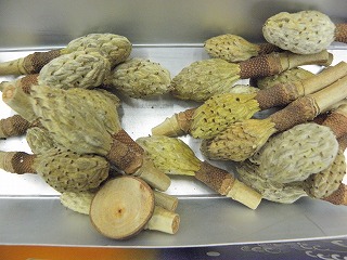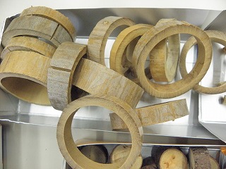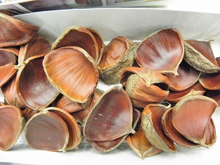 【左】タイサンボクの若い果実 【中】竹の輪切り 【右】クリ