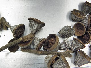 【左】小枝 【中】ユーカリの若い果実 【右】マテバシイ