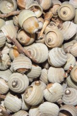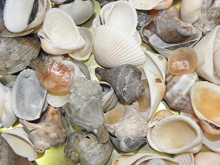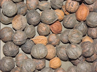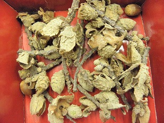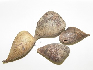 【左】イスノキの虫瘤 【中】オニグルミ 【右】貝殻