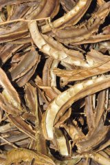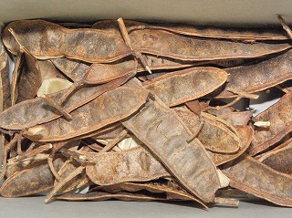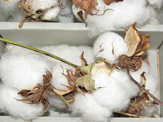【左】ダイホウマツの球果片 【中】ワタ 【右】ニセアカシアのサヤ