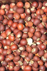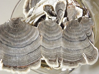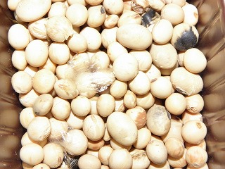 【左】シカクマメ(野菜) 【中】ダイズ 【右】カワラタケ
