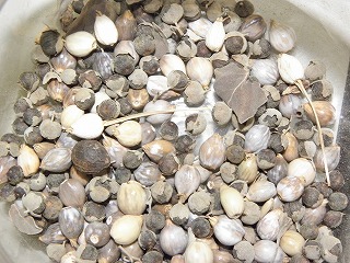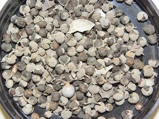 【左】ニガウリの種子 【中】72 【右】ヤブミョウガ