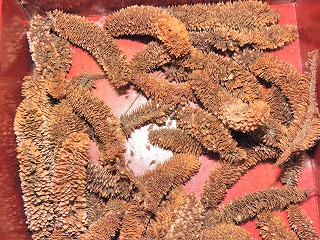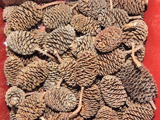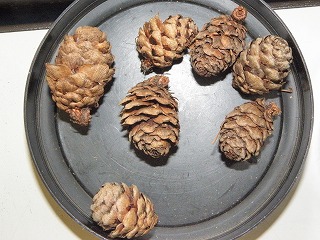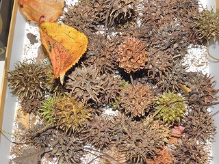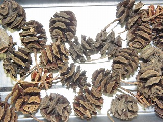 【左】ヒマラヤスギの球果 【中】ナンキンハゼ 【右】メタセコイアの球果
