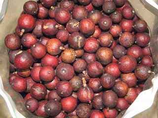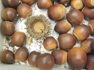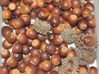 【左】スダジイ 【中】ツバキ 【右】ハンテンボクの実