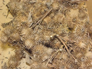 【左】アラカシ 【中】ゴボウの果実 【右】小枝
