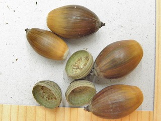 【左】アベマキ? 【中】モモの種子 【右】コナラ