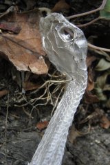 【左】アオダイショウの抜け殻? 【中】ヒキガエル 【右】イラガの仲間と食べ跡