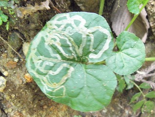 【左】アキアカネ 【中】ハヤシノウマオイ 【右】ハモグリバエの食べ痕