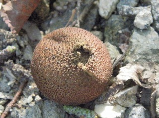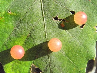 【左】左は、ミズナラに付いたナラメイガタマバチの虫瘤 【中】ナラメカイメンタマバチの虫瘤? 【右】スギヒラタケ