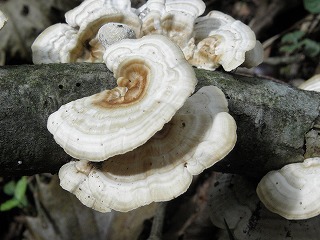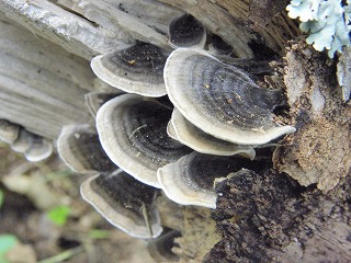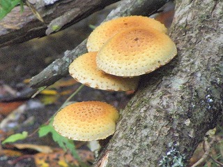 【左】キチャハツ? 【中】ツヤウチワタケ 【右】カワラタケ