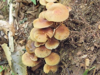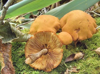 【左】ウラベニホテイシメジ 【中】ヒダハタケ(毒) 【右】アキヤマタケ?
