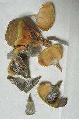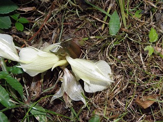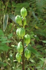 【左】ノギラン 【中】ウバユリ果実、左。右、葉(歯)が枯れている 【右】ミョウガ