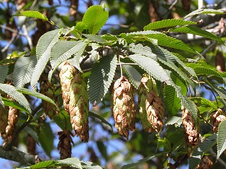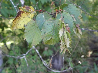【左】モミ。右、果実(球果) 【中】イヌシデ 【右】アカシデ
