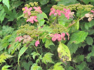 【左】ヤマアジサイ 【中】ノリウツギ 【右】ツルアジサイ