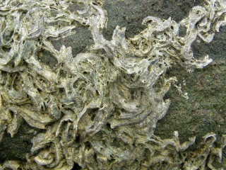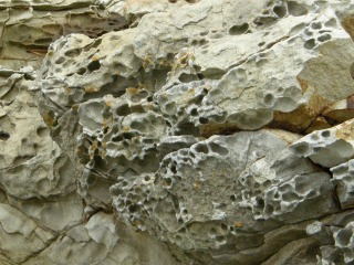 【左】波で浸食された穴がたくさん開きました。