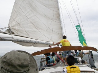 【中】港を出てから帆を立て、帆走しました。