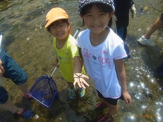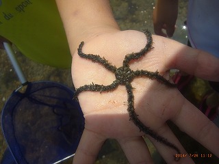 【左】潮だまりの中も見ました        【右】クモヒトデを採ってご機嫌