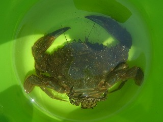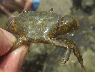 【左】ケアシホンヤドカリ        【中】イシガニ          【右】イワガニにフクロムシが寄生しています