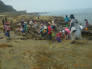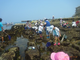 JAFのテーマは、<「JAF自然体験イベント・いま、自然を考える」〜磯の生き物観察in美浜町冨具崎 磯浜海岸>で実施しました。この日は、猛暑とならなかったこと。大潮で観察場所が広かったこと。、怪我がなかったことなどで家族が楽しく快適に磯の生き物を楽しむことが出来ました。(記・降幡)